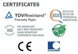 - استاندارد های ISO 9001, ISO 14001, OHSAS 18001, IEC 61215, IEC 61730, etc